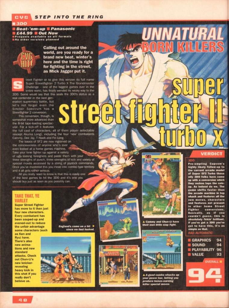 Super Street Fighter 2 Turbo Review Posted byChristopher CookApril 29, 2022Posted inReview From Computer and Video Game magazine, January 1995. Score: 94 Share this: Click to share on X (Opens in new window) X Click to share on Facebook (Opens in new window) Facebook Like Loading...