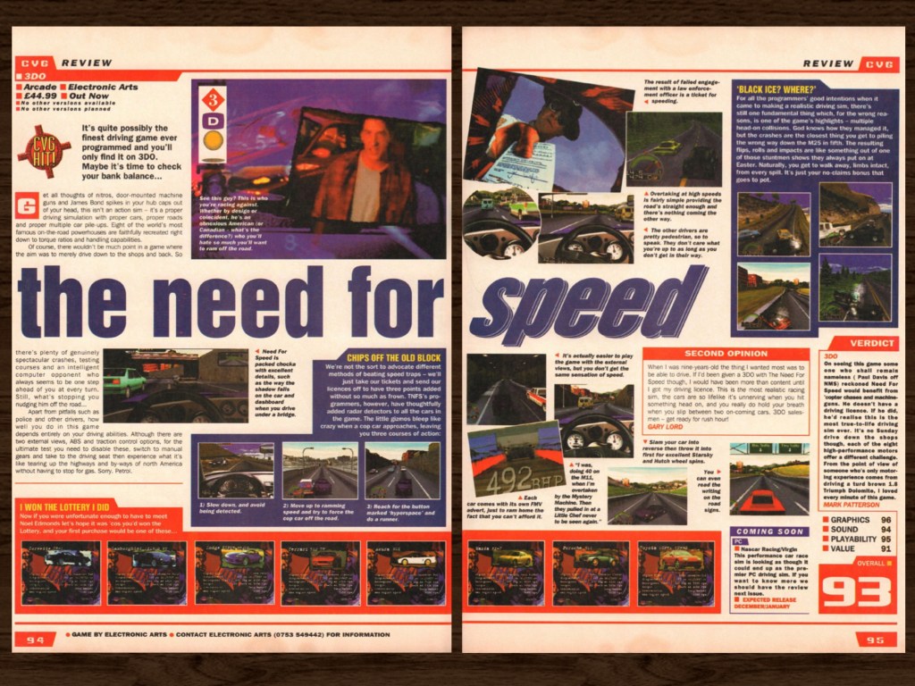 The Need for Speed Review Posted byChristopher CookMay 12, 2022Posted inReview From Computer and Video Game magazine, January 1995. Score: 93 Share this: Click to share on X (Opens in new window) X Click to share on Facebook (Opens in new window) Facebook Like Loading...