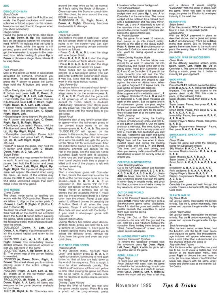 November 1995 Tips & Tricks Codes for the 3DO Posted byChristopher CookMay 14, 2022Posted inNews Article Share this: Click to share on X (Opens in new window) X Click to share on Facebook (Opens in new window) Facebook Like Loading...