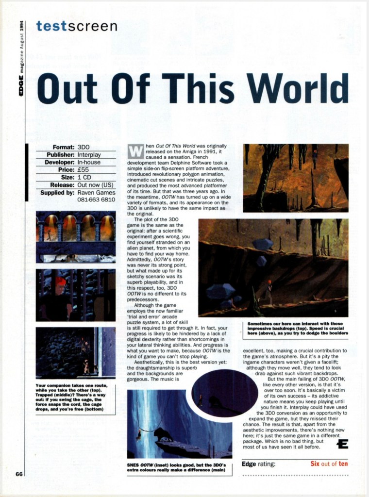 Out of this World Review Posted byChristopher CookMay 19, 2022May 16, 2022Posted inReview Review from EDGE (UK) magazine August 1994 Score: Six out of ten Share this: Click to share on X (Opens in new window) X Click to share on Facebook (Opens in new window) Facebook Like Loading...