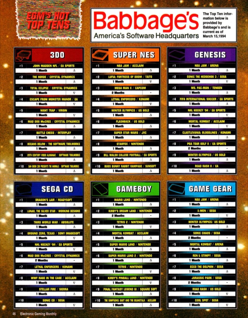 Babbage’s Top 10 Sales from March 15, 1994 Posted byChristopher CookMay 27, 2022Posted inNews Article #1 for the 3DO: John Madden NFL by EA Sportz Share this: Click to share on X (Opens in new window) X Click to share on Facebook (Opens in new window) Facebook Like Loading...