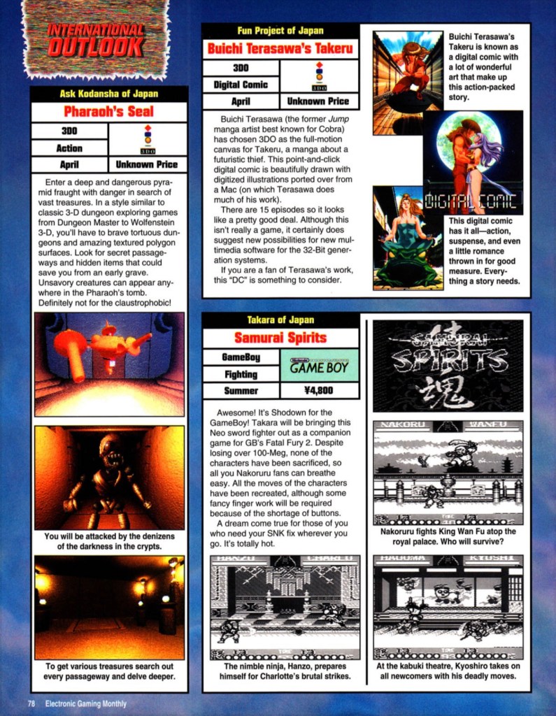 International Outlook: Pharaoh’s Seal and Buichi Terasawa’s Takeru Posted byChristopher CookMay 29, 2022Posted inPreview From EGM magazine, May 1994 Share this: Click to share on X (Opens in new window) X Click to share on Facebook (Opens in new window) Facebook Like Loading...