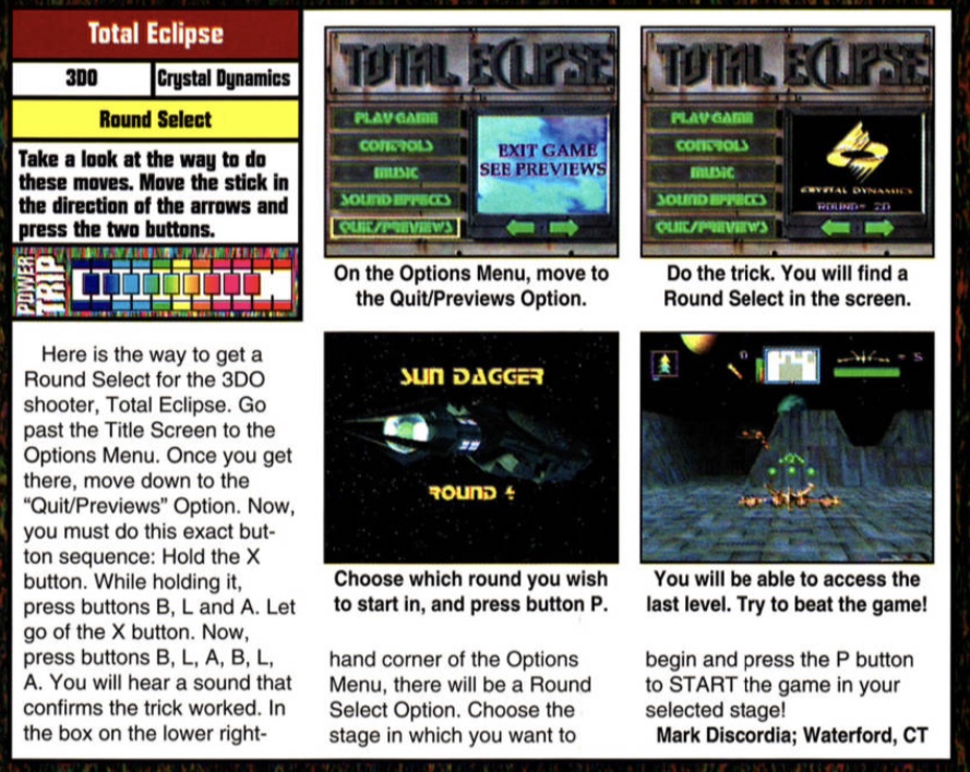 Total Eclipse Cheat Codes Posted byChristopher CookMay 30, 2022Posted inUncategorized From EGM magazine, May 1994 Share this: Share on X (Opens in new window) X Share on Facebook (Opens in new window) Facebook Like Loading...