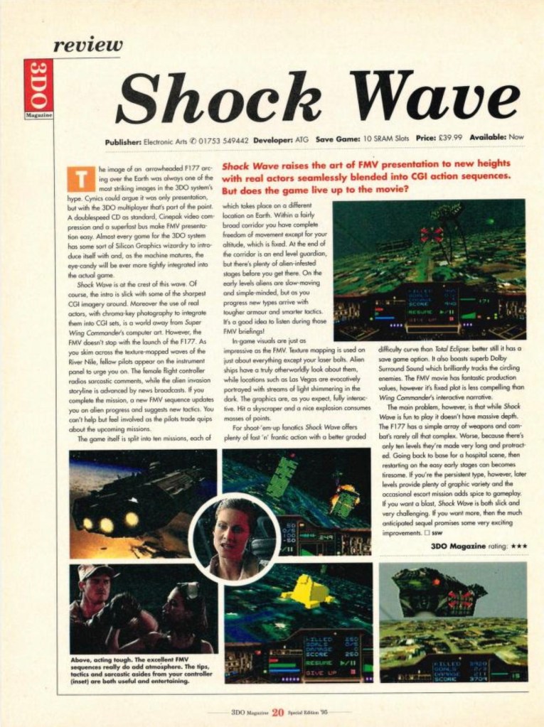 Shock Wave (3DO) Review from 3DO Magazine Posted byChristopher CookJune 25, 2022Posted inReview Shock Wave (3DO) Review from 3DO Magazine, 1995/1996, Issue 1 Share this: Click to share on X (Opens in new window) X Click to share on Facebook (Opens in new window) Facebook Like Loading...