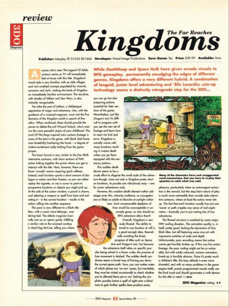 The Far Reaches Kingdoms (3DO) Review from 3DO Magazine Posted byChristopher CookAugust 6, 2022Posted inReview The Far Reaches Kingdoms (3DO) Review from 3DO Magazine, 1995/1996, Issue 1 The Far Reaches Kingdoms (3DO) Review from 3DO Magazine, 1995/1996, Issue 1 Share this: Click to share on X (Opens in new window) X Click to share on Facebook (Opens in new window) Facebook Like Loading...