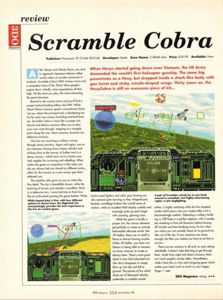 Scramble Cobra (3DO) Review from 3DO Magazine Posted byChristopher CookAugust 31, 2022Posted inReview Scramble Cobra (3DO) Review from 3DO Magazine, 1995/1996, Issue 1 Scramble Cobra (3DO) Review from 3DO Magazine, 1995/1996, Issue 1 Share this: Click to share on X (Opens in new window) X Click to share on Facebook (Opens in new window) Facebook Like Loading...