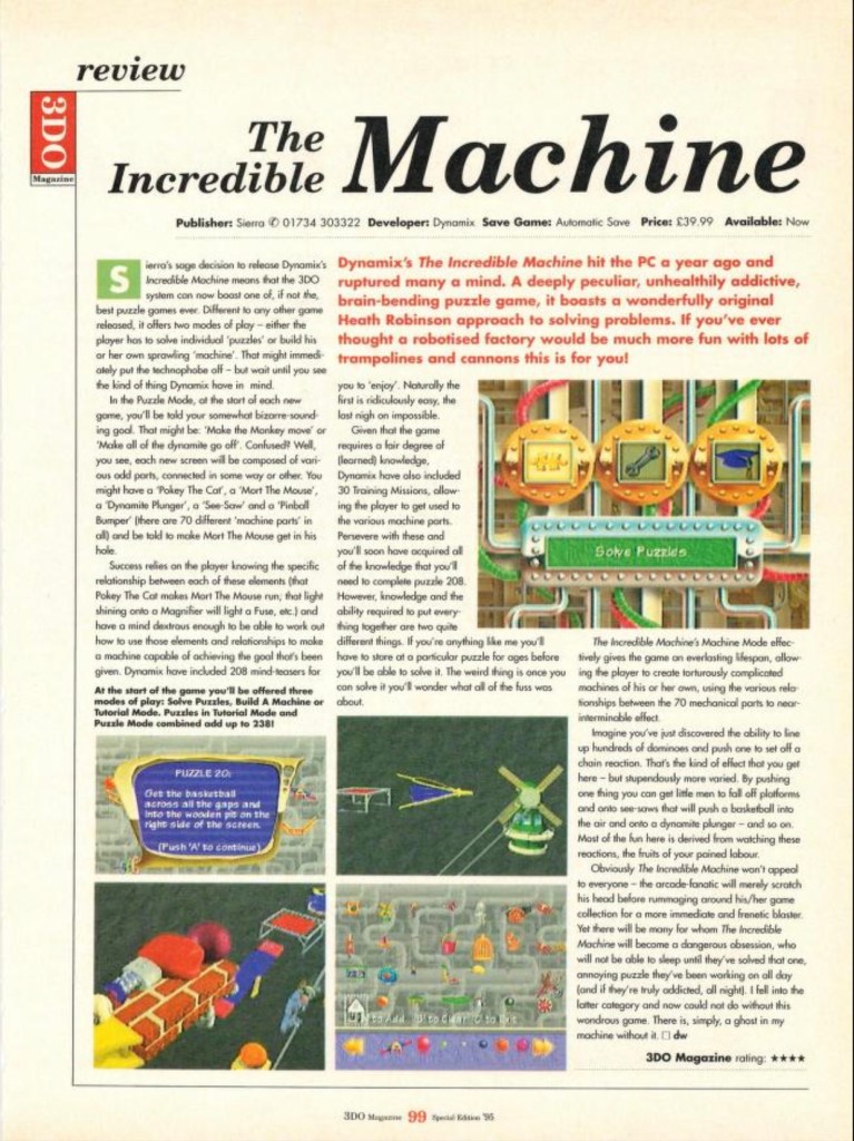 The Incredible Machine (3DO) Review from 3DO Magazine The Incredible Machine (3DO) Review from 3DO Magazine, 1995/1996, Issue 1