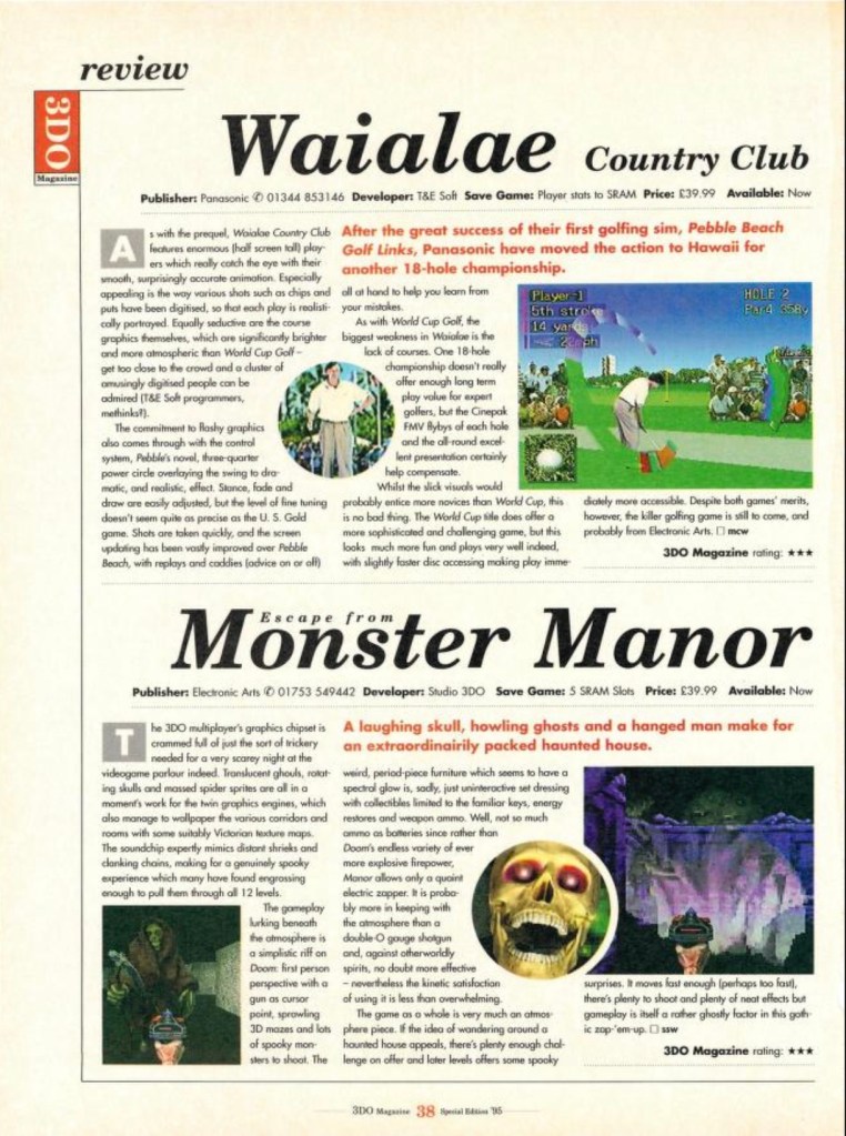 Waialae Country Club / Escape from Monster Manor (3DO) Review from 3DO Magazine Review from 3DO Magazine, 1995/1996, Issue 1